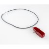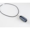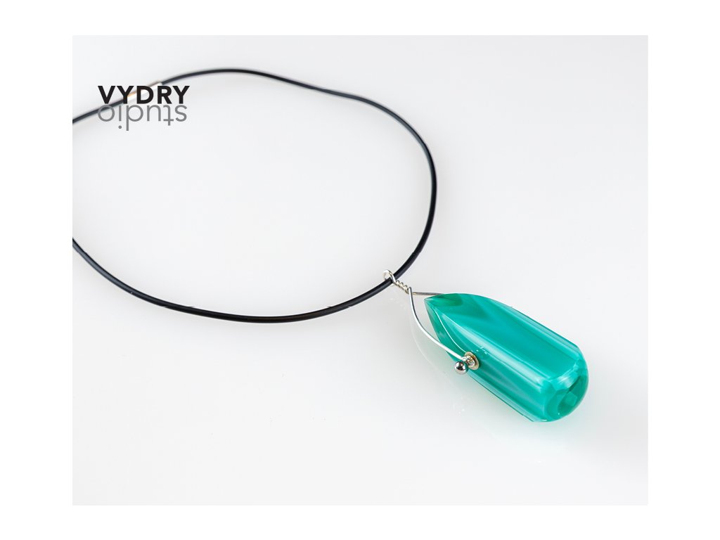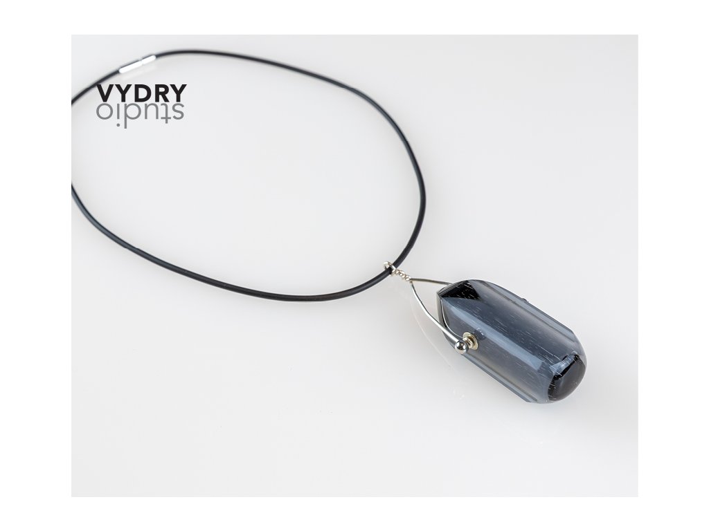 Broušené, ručně vyrobené sklo. Obruč je z antialergického gumového lanka.