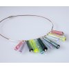 Skleněné ručně foukané a broušené trubičky na nerezovém obojku. Kovové komponenty jsou z obecného kovu, stříbřené.